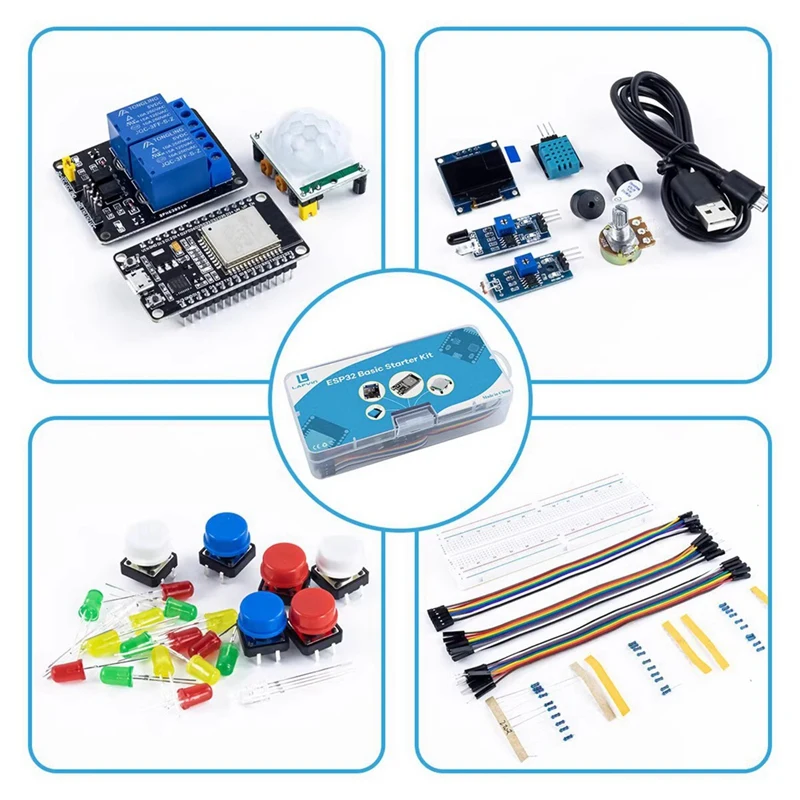 Electronics Components Basic Starter Kit for ESP32 ESP-32S WIFI I OT Development Board Learning Basic Starter Kit with Storage Box 0.96 Inch Oled Photoresistor Module Pir Motion Sensor for Arduino