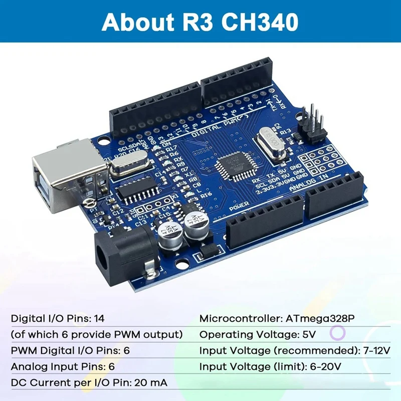 Microcontroller: Atmega 328P(of which 6 provide PWM output)